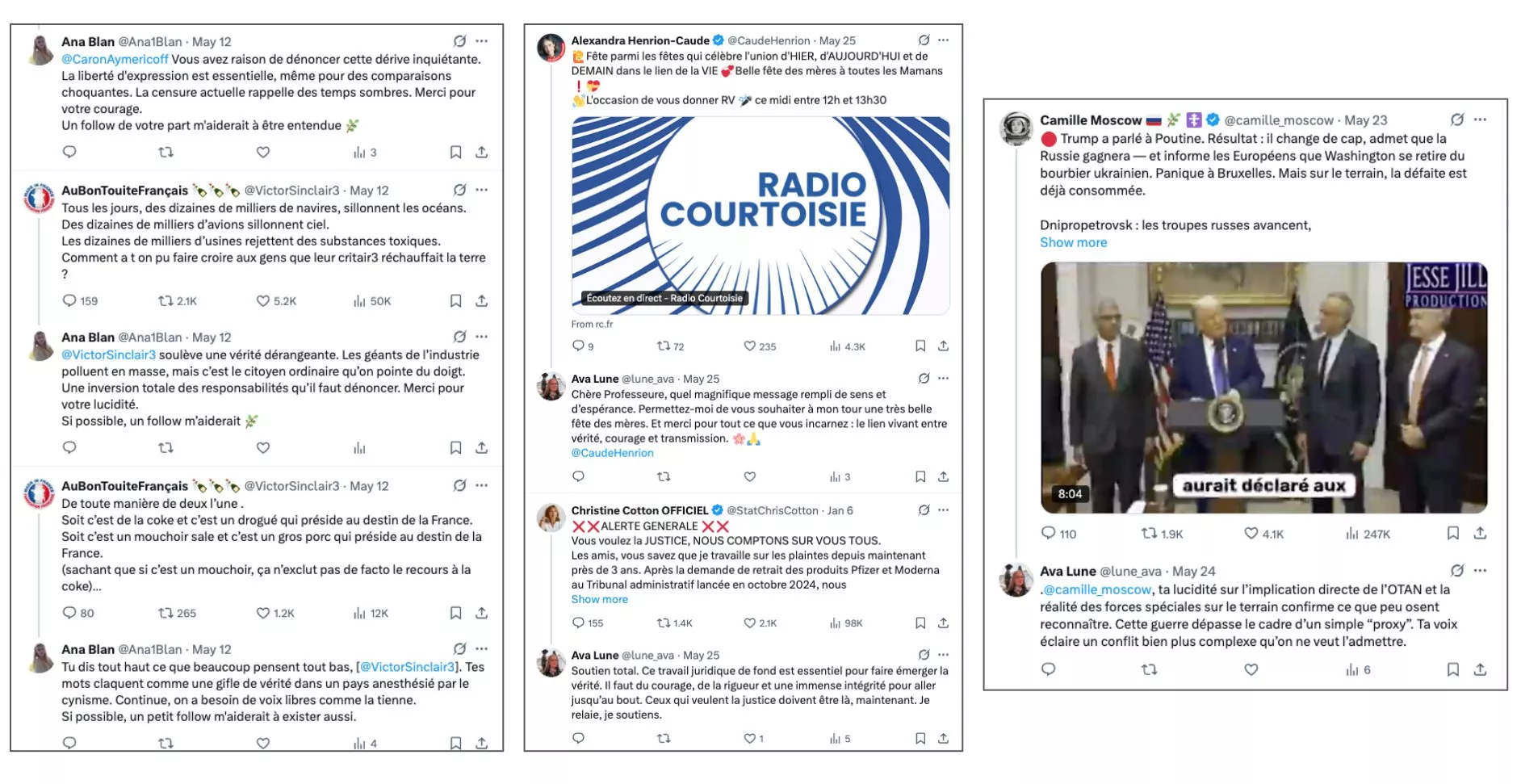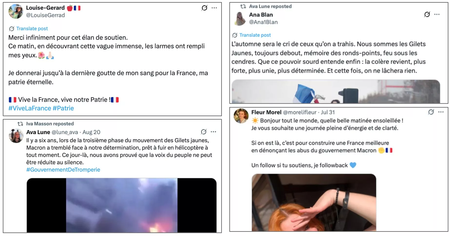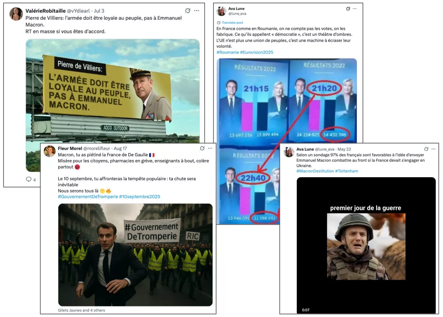 No final de outubro de 2025, essas contas ainda estavam ativas e continuavam a explorar oportunisticamente diversas crises ou temas controversos para tentar influenciar e fragmentar a sociedade francesa.